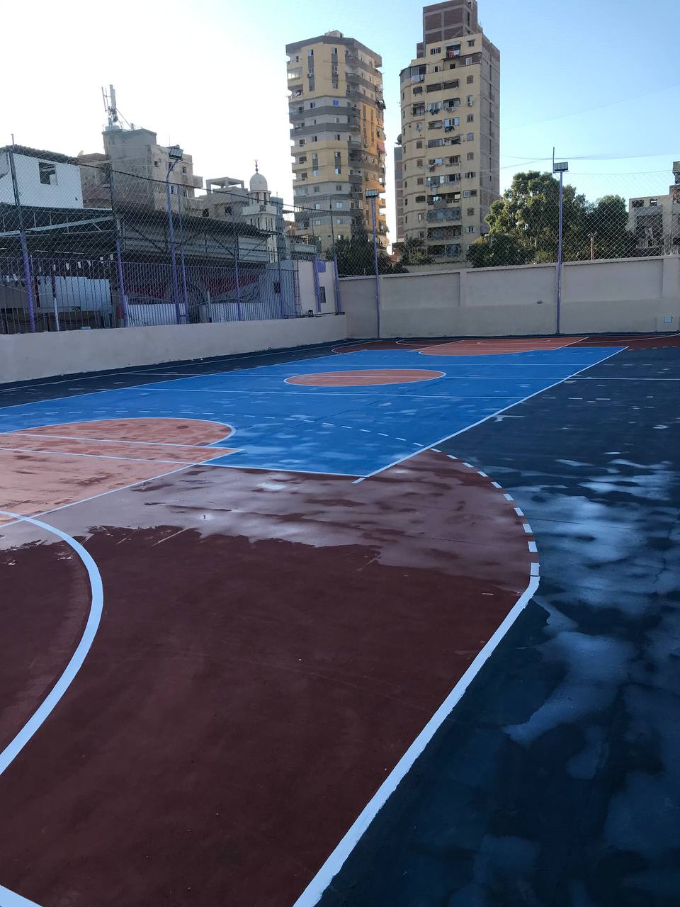 5- أرضيات الباركيه تشتهر أرضيات الباركيه بمظهرها الفخم، وتُستخدم بشكل رئيسي في ملاعب كرة السلة وكرة اليد داخل ملاعب مغلقه، حيثُ توفر سطحًا أملسًا يُسهل حركة اللاعبين، كما تضيف لمسة احترافية للمكان. لكن يتطلب الباركيه عناية خاصة للحماية من الخدوش والرطوبة، مما يزيد من تكاليف الصيانة.